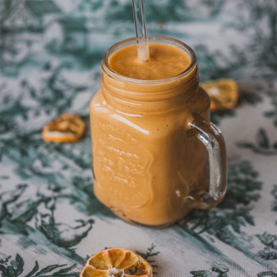 Януарски протеинов шейк с мандарина, куркума и супер храни – лек, засищащ и зареждащ отвътре.
