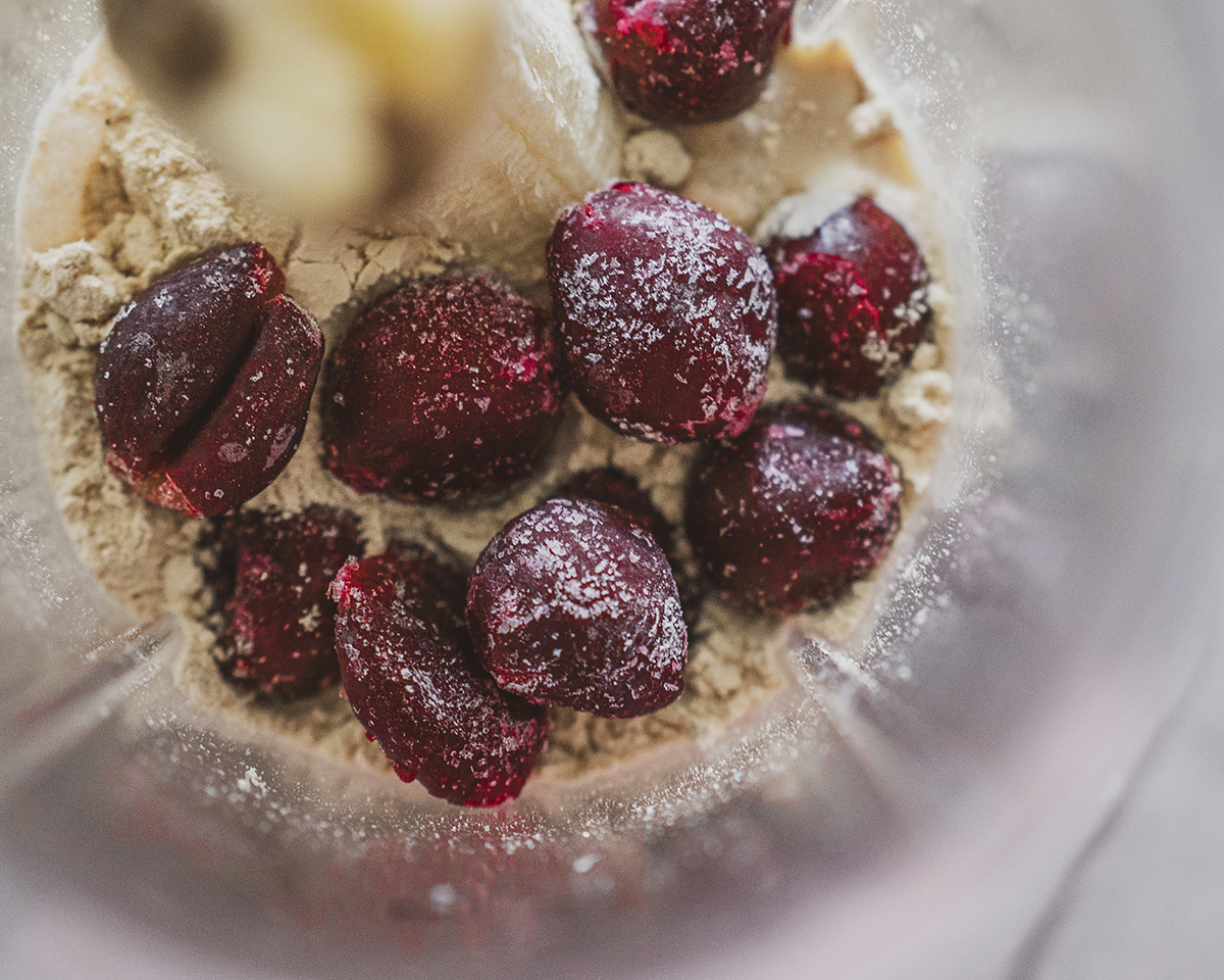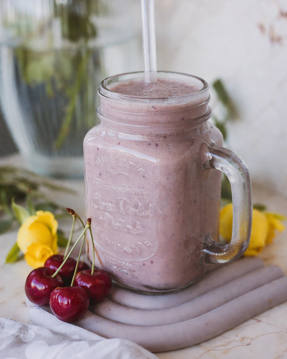 Today’s recipe is for a fresh and creamy shake with cherries and vanilla protein—the perfect combination of the fruit’s slightly tart flavor and the gentle sweetness of vanilla. The banana and cashews add a velvety texture, while the oat-coconut milk blends all the flavors into a smooth and nutritious drink. The result is a balanced shake, perfect for breakfast, a quick energy boost during the day, or after a workout. If desired, you can also add a little dried mango for even more fruity sweetness and arom