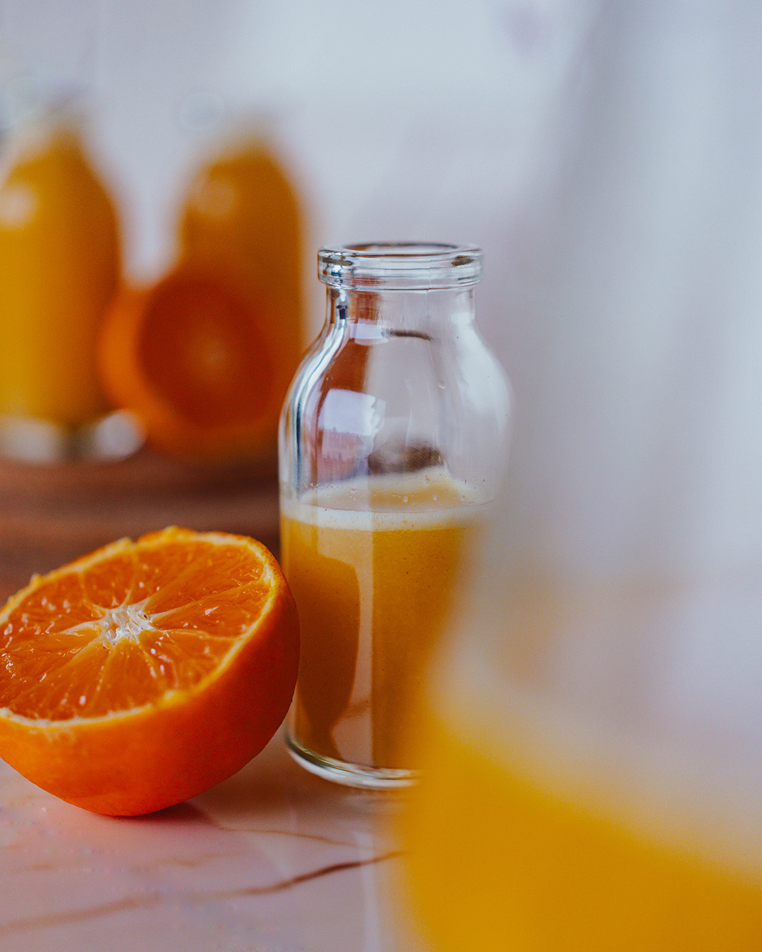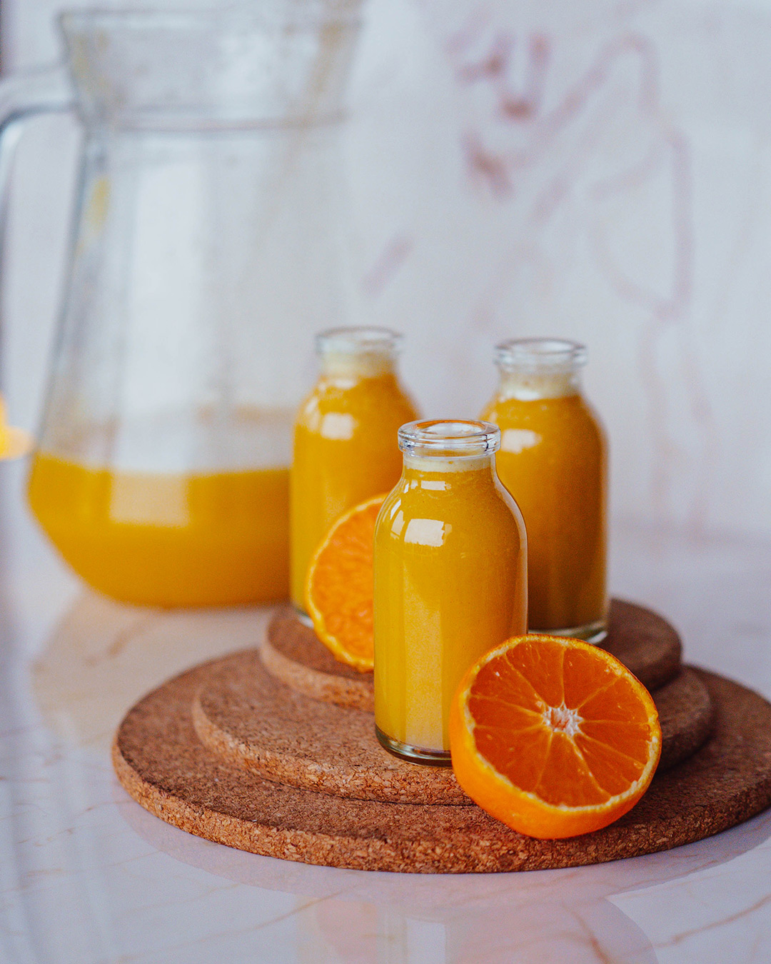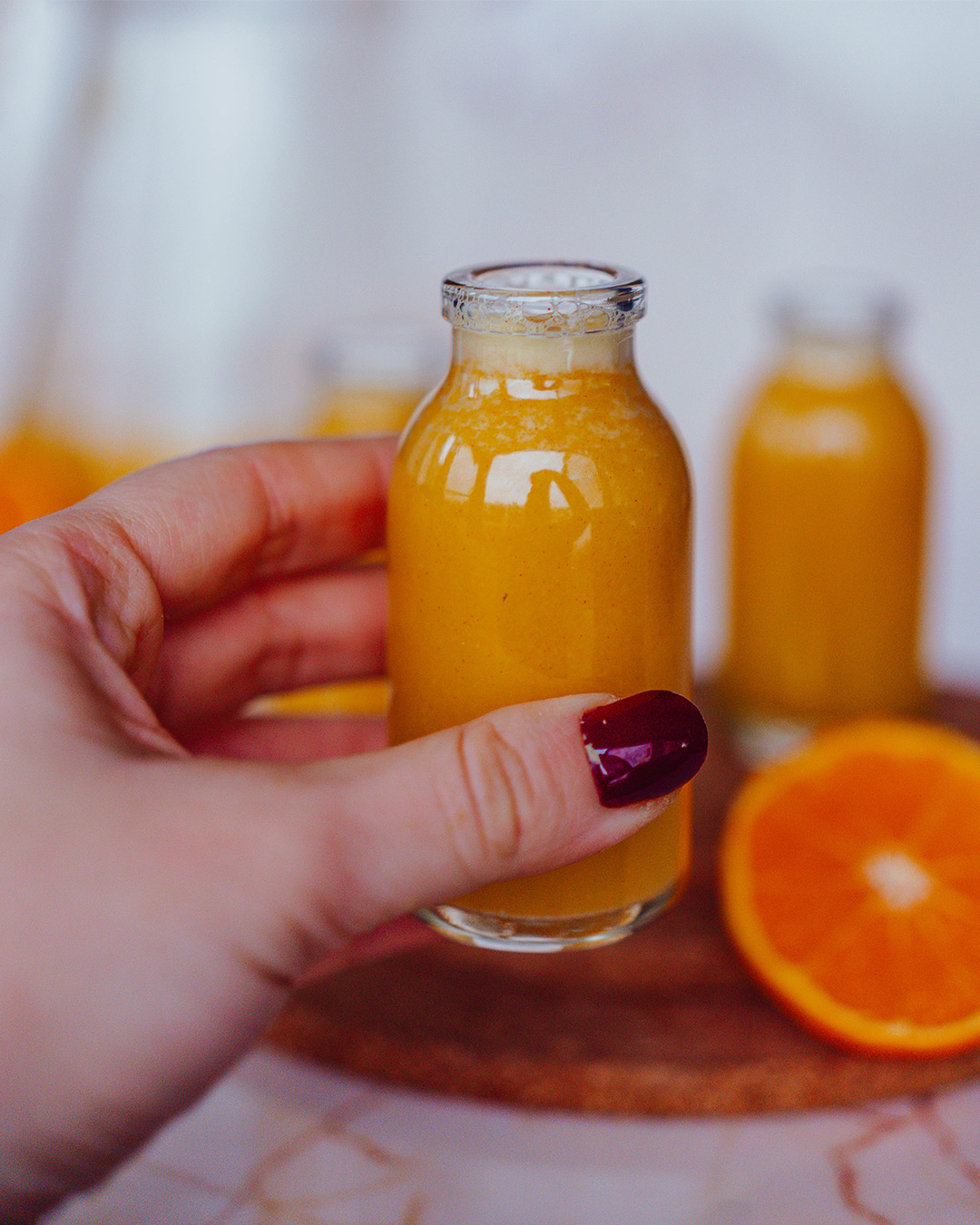 At the end of November, when the body begins to feel the change of seasons, these ginger shots are a small but powerful ally for immunity. A combination of fresh ginger, citrus fruits, and apples, enhanced with coconut water and a pinch of cayenne pepper, which warms, invigorates, and prepares the body for the winter months.