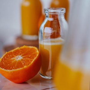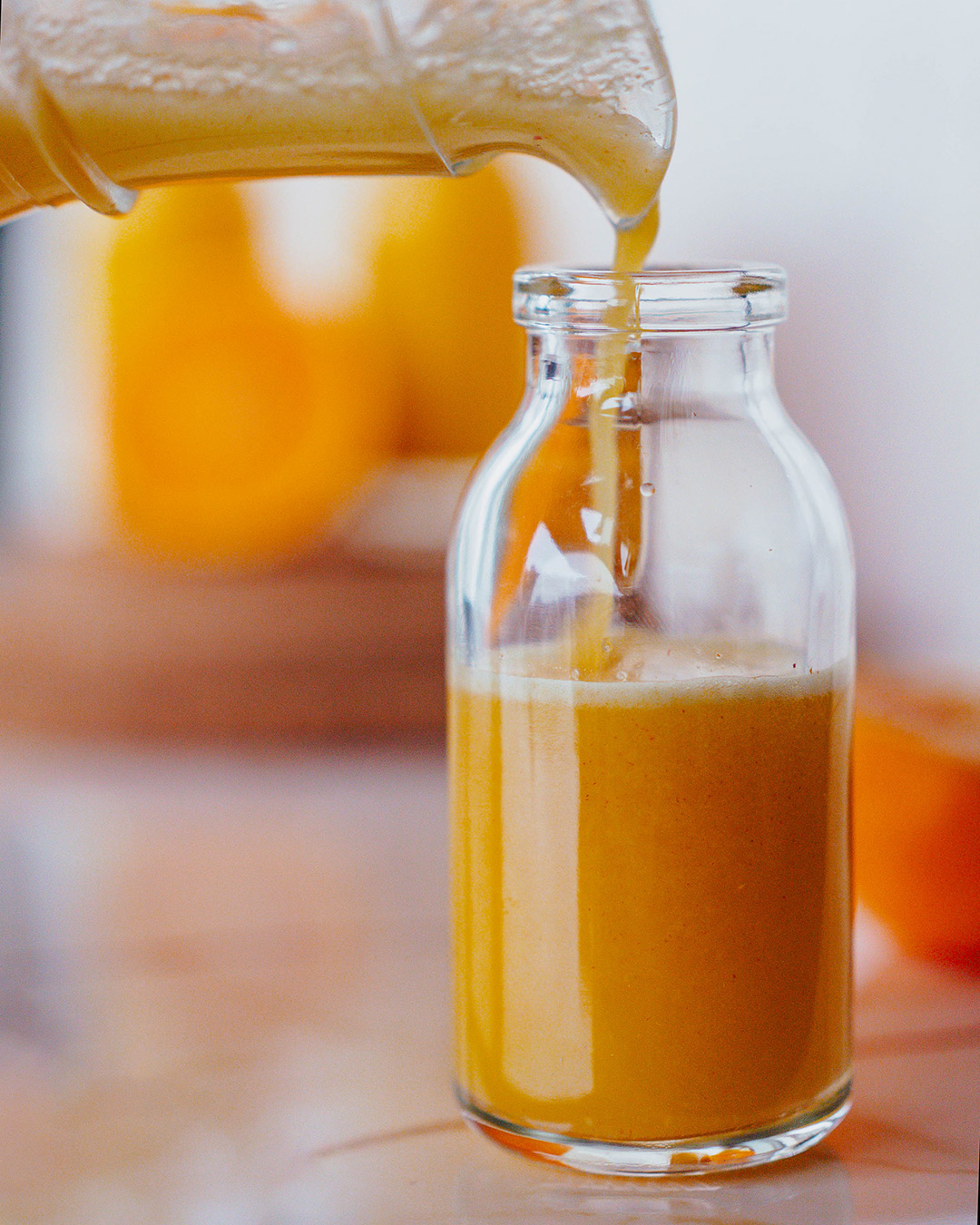 Pour the prepared concentrated juice into small bottles or shot glasses.