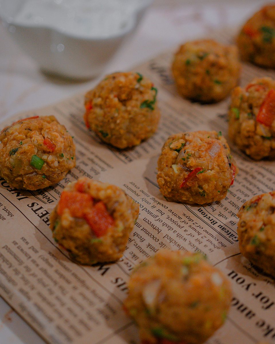 С влажни ръце оформете около 25 кюфтенца. Те са готови за консумация без печене – плътни, богати на вкус и хранителни вещества. Поднесете ги със свеж или кремообразен сос по избор и се насладете на една лека, но пълноценна растителна вечеря.