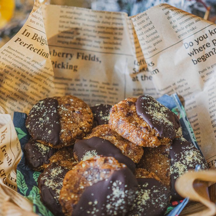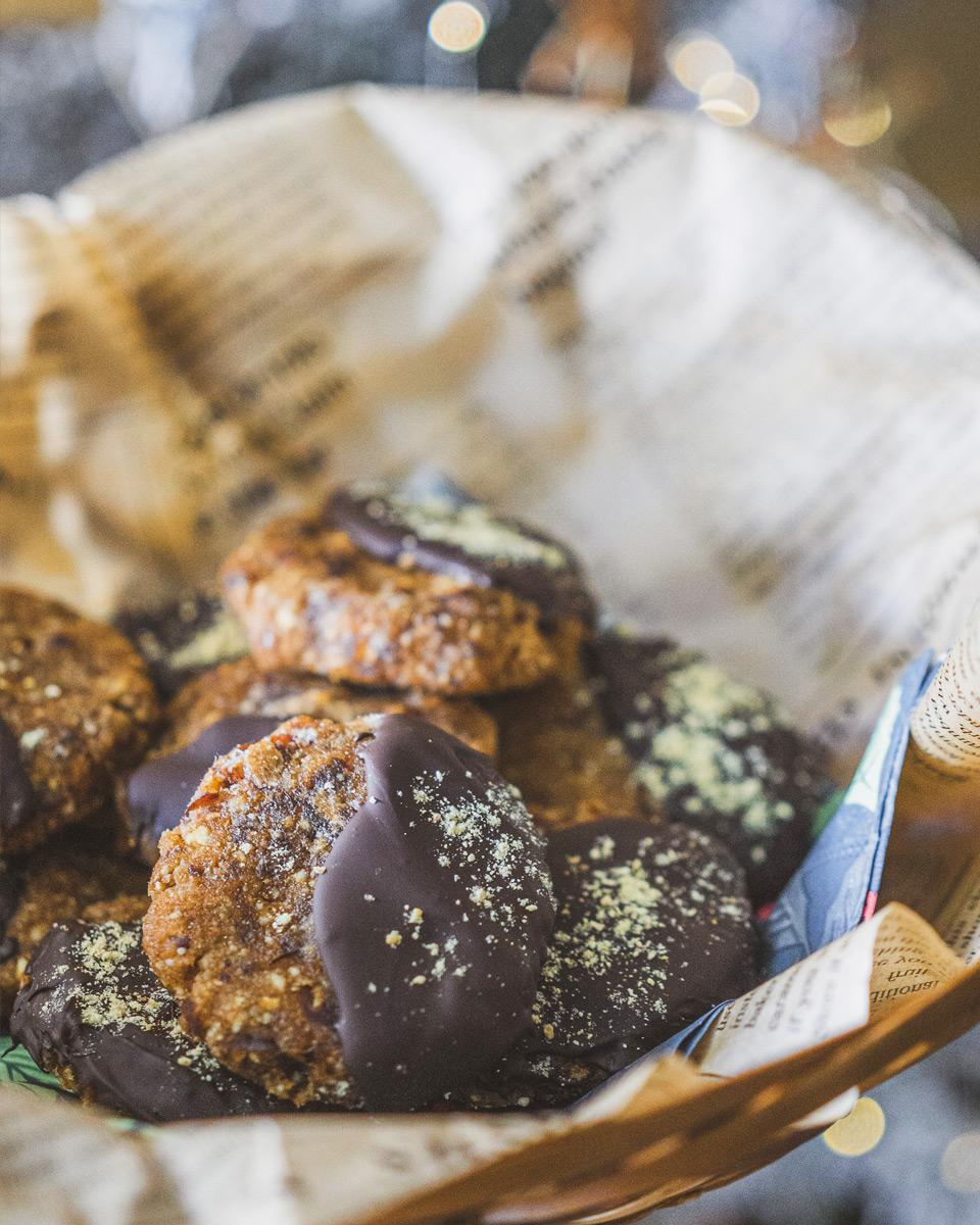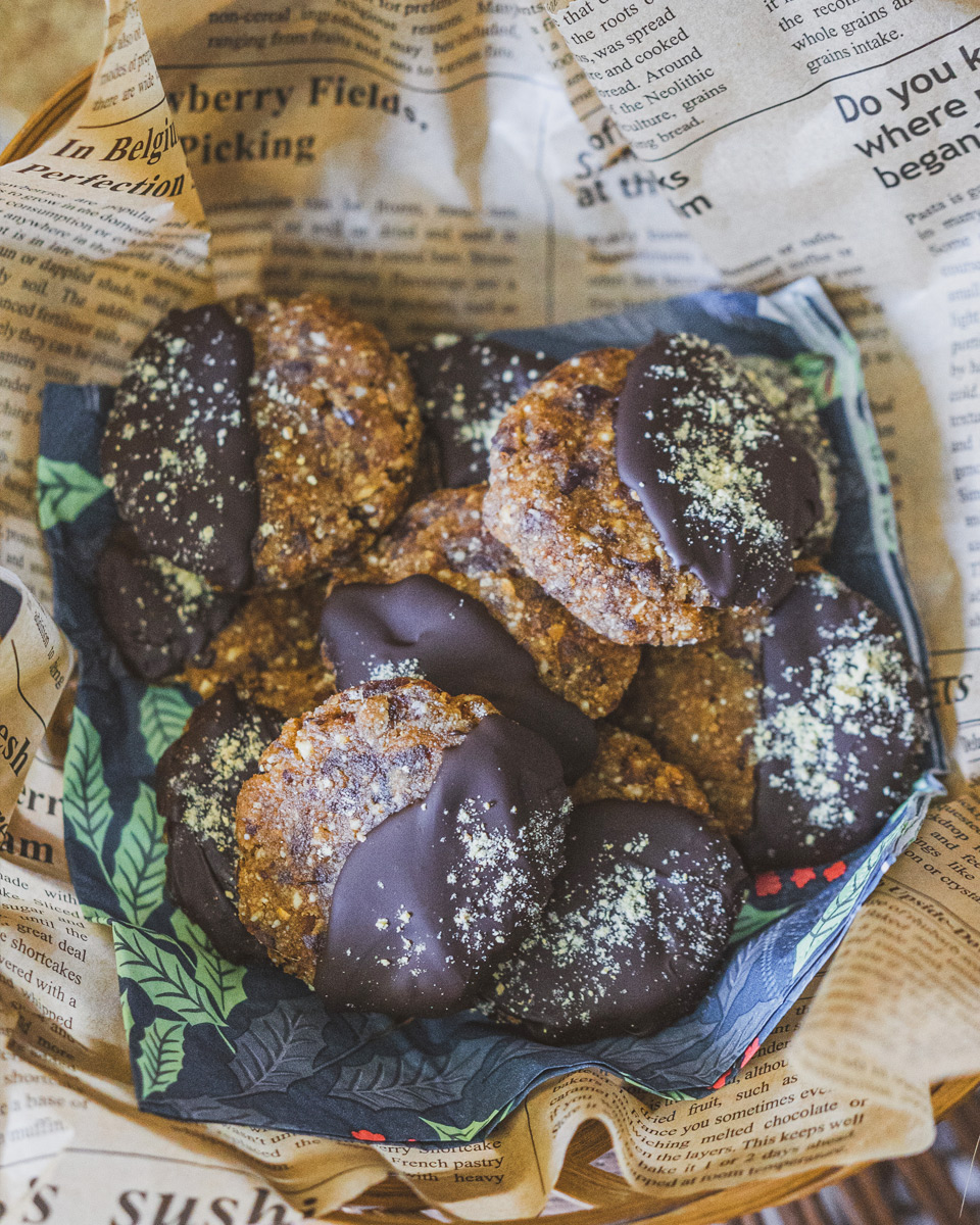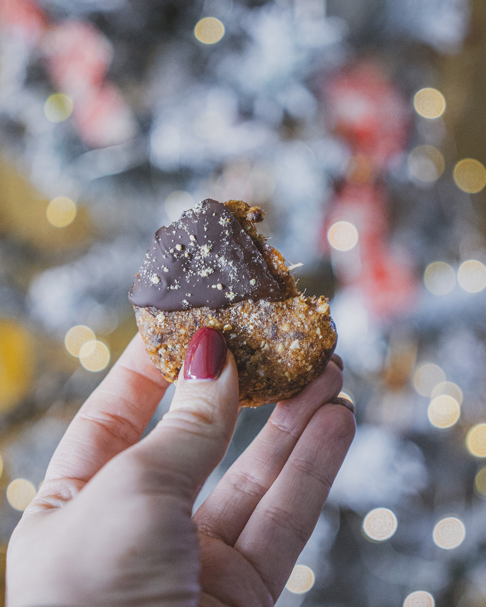 Свежи, ароматни и стопроцентово без печене — тези сурови портокалови сладки с шоколад съчетават кремообразността на ядките, естествената сладост на фурмите и яркия цитрусов акцент на портокала. Получава се плътна, сочна смес, която ухае на зима, празници и домашен уют. Потопени в разтопен шоколад и поръсени с фини портокалови корички, те се превръщат в истински бисквитки, които се приготвят лесно, изглеждат впечатляващо и са идеални за сладка хапка по всяко време.