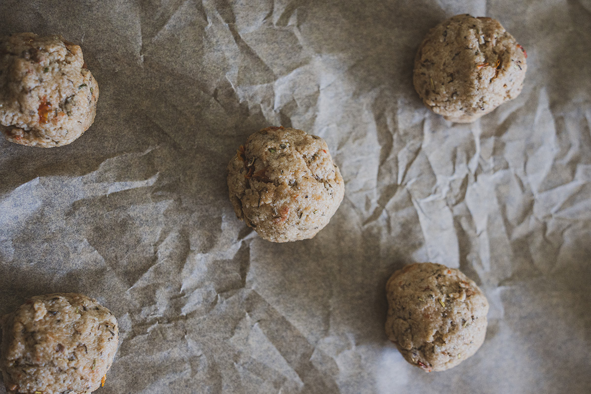 Arrange the balls on a baking paper and bake for about 20 minutes.