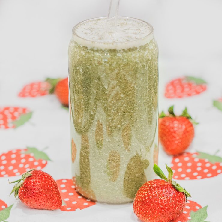 Fresh, light, and packed with nutrients—this green smoothie combines the sweetness of bananas and strawberries with the richness of green superfoods. Nettle flour and kale provide valuable vitamins and minerals, while chia seeds add fiber and thickness. The result is a balanced and refreshing drink, perfect for a light start to the day or a quick energy boost. You can also add a light energy boost and an interesting flavor with a matcha oat drink.